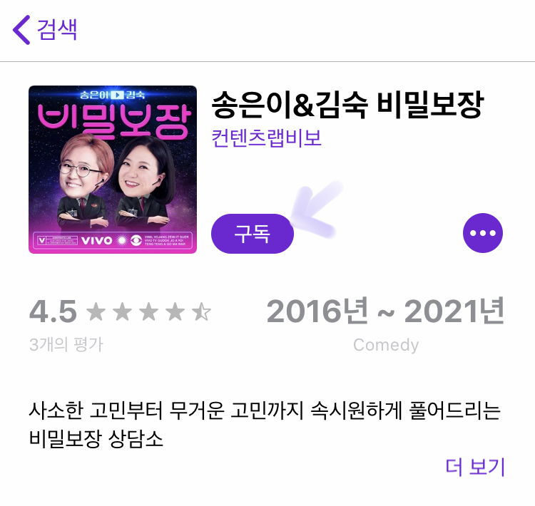구독은 프로그램을 상세 페이지에 들어가 상단의 '구독'버튼을 누르면 완료! 그때부터는 구독 리스트에서 자신만의 구독채널 목록을 확인할 수 있다.