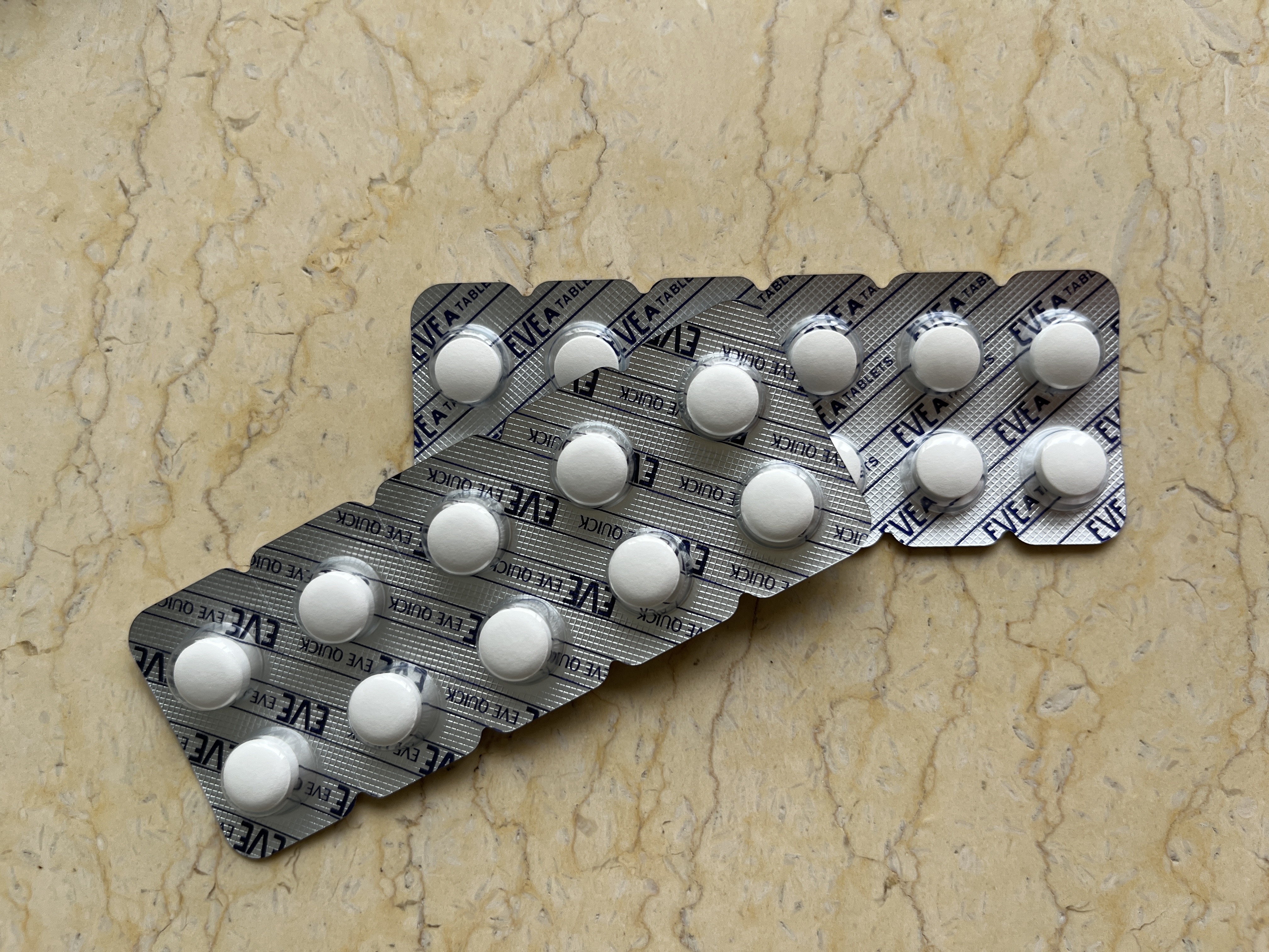 한국에서 직구로 구매하면 가격이 싼 편은 아니지만 (40정에 30,000원대) 효과면에서는 정말 뛰어나서 생리통으로 고통받는 사람들에겐 충분히 투자 가치가 있는 약이라고 개인적으로 생각한다. 이브진통제는 몇 가지 종류가 있는데 내가 복용하고 있는 건 일반 진통제인 EVE A와, 조금 더 빠른 진통 효과를 가져다주는 EVE Qtick 제품.